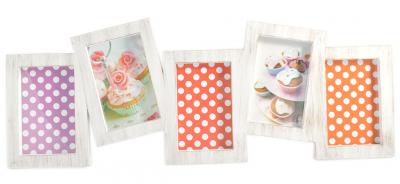 Бяла винтидж мултирамка - пет в едно. Изработена от PVC материал и фронт стъкло. С възможност за хоризонтално окачване. Подходяща за снимки с размери: 10 х 15 см.