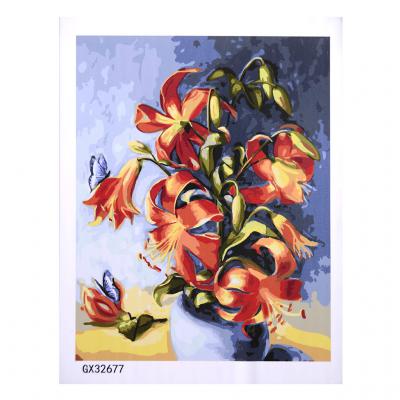 Комплект за рисуване на картина по номера - ваза с цветя и пеперуди.