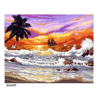 Комплект за рисуване на картина по номера - море и ветроходен кораб.