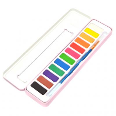 Комплект 12 водни бои за рисуване и четка в удобна метална палитра. Размеи на кутията: 22х5 см.