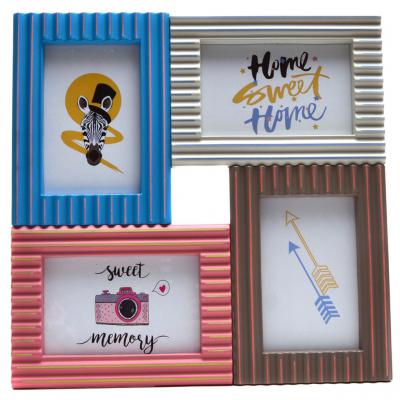 Мулти рамка за 4 снимки в различни цветове. Рамката е релефна, изработена от PVC материал, с кукички за закачване на стена. Рамката е подходяща за 2 хоризонтални и 2 вертикални снимки с размери: 10х15 см. Размери на рамката: 33х33 см.