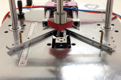 Пневматичен такер за заковаване на MDF, PS и дървени профили за рамки. Максимална ширина на профила 10 см. Работи с V-образни пирони с размер: