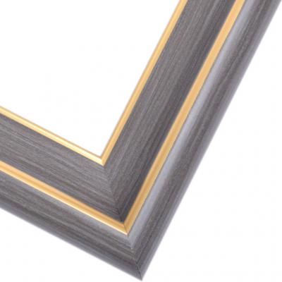 Профил за рамка в цвят графит със златисти кантове. Профилът е вдлъбнат, подходящ за направата на дълбоки рамки.