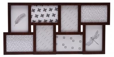 Рамка за 8 бр. снимки, изработена от PVC профил - имитация на тъмно дърво, фронт стъкло и кукички за закачване. Подходяща за снимки с размери: 9х14 см.