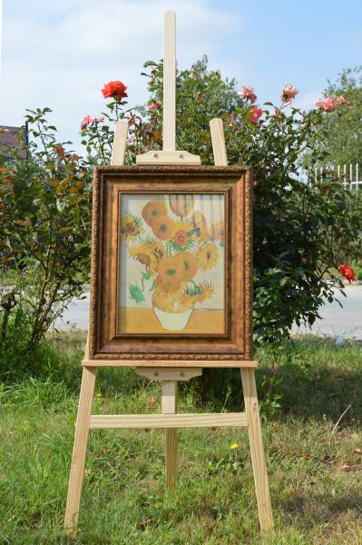 Статив (триножник) с регулируема височина, подходящ както за рисуване, така и за излагане на творби. Изработен от дървен материал. Размери: 150х50х115 см.