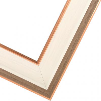 Стилен профил за рамка - бял фладер с линия и гръб цвят капучино. Декориран с вътрешен и външен кант - старо злато.