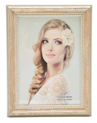 Стилна рамка за снимки със златиста текстура. Рамката е изработена от PVC материал, фронт стъкло и гръб с поставка за вертикално и хоризонтално поставяне. Подходяща за снимки с размери: 13 х 18 см.