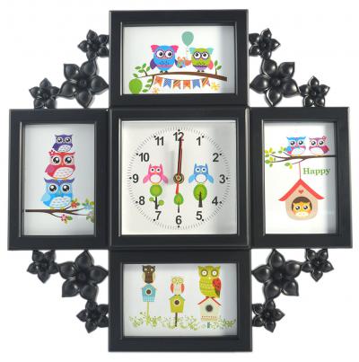 Черна рамка за 4 снимки с часовник. Чудесен завършек на детски интериор или поднесете като оригинален подарък на любим човек.