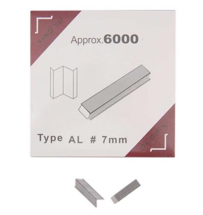 V-образни скоби за сглобяване на PS или дървени профили за рамки. Височина 7 мм, стандарт AL (алфа) - 10,5 мм. Приблизителен брой в кутия 5900 бр.
